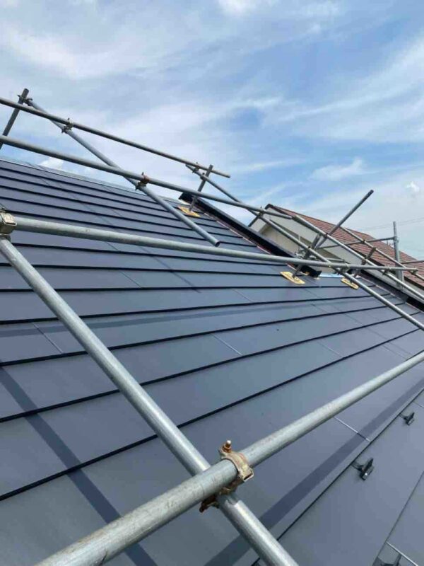 ニチハ 横暖ルーフ使用。この事例の様に経年劣化で塗装も出来ないくらい傷んでいる屋根、外壁のオファーもよくいただきます。雨が漏る前に施工が出来て本当に良かったです。