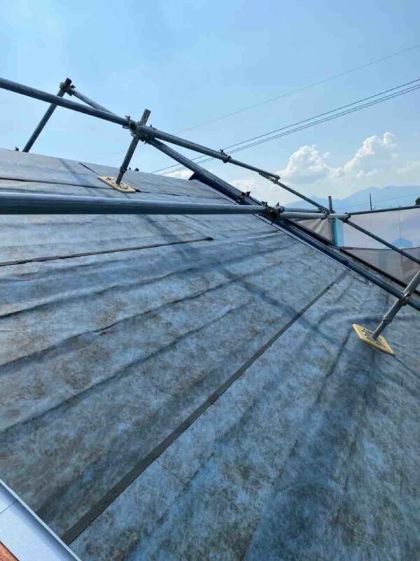 当初塗装工事の予定でしたが、既存屋根材の劣化がひどくカバー工法にて対応させていただきました。